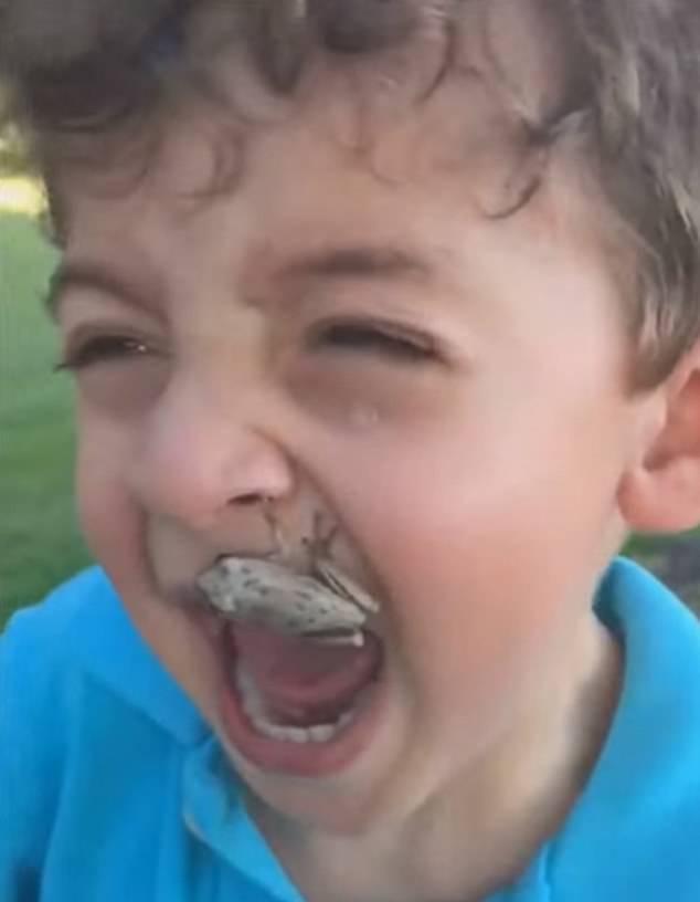 ▼為了安撫孩子,媽媽伸出手指戳了一下青蛙,想要將其驅趕走,沒想到青蛙竟然直接跳到了男童的嘴巴上,讓男童更加驚恐爆哭。