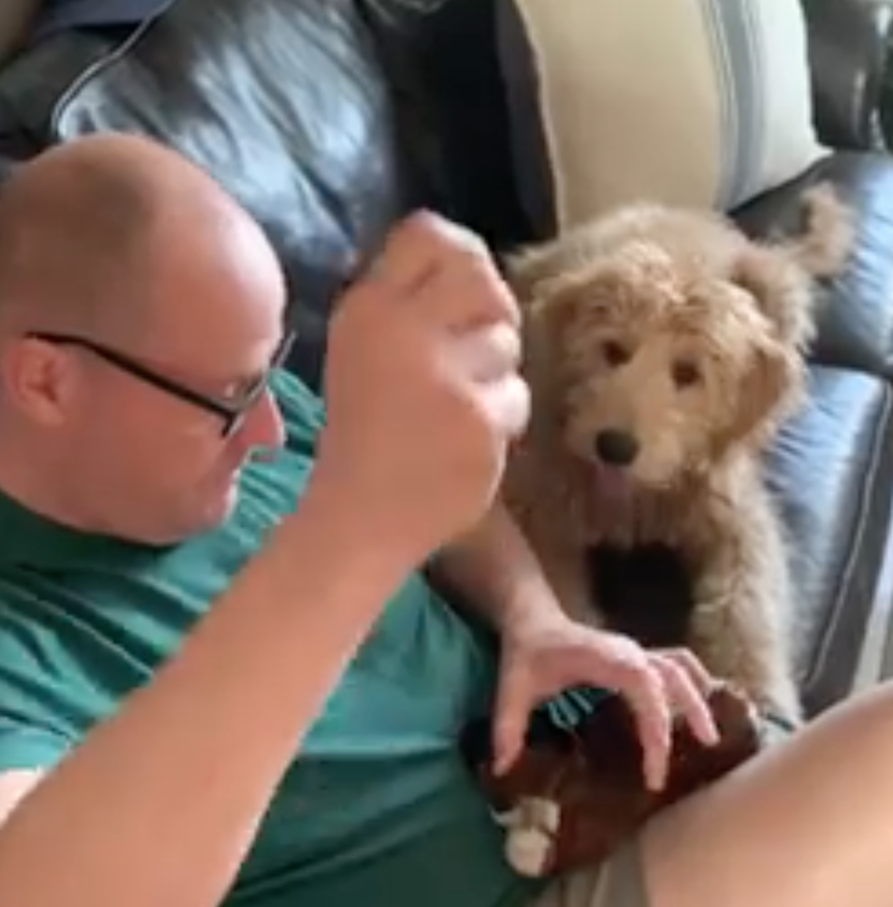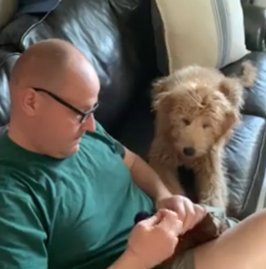 狗狗最愛的玩偶「突然裂開」超擔心 把拔一出手「救活它」讓狗狗笑了