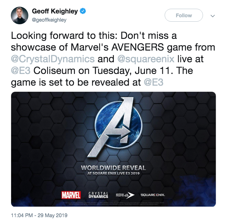 2019年05月31日官方消息!Square Enix《漫威復仇者聯盟》(Marvel's Avengers)遊戲即將於2019年美國 E3 遊戲展首次大公開!到時候大家就可以看到籌備多年的漫威遊戲到底長這樣,有多少驚喜等著大家去玩!