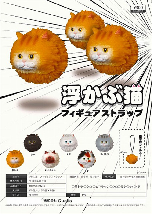 ▼這次廠商將推出6款不同配色的漂浮貓扭蛋,有黑貓、白貓、虎斑貓、茶色虎斑貓、喜馬拉雅貓與三花貓,尺寸約有40mm,單轉參考售價約300元日幣,預計在今年6月中旬上市。
