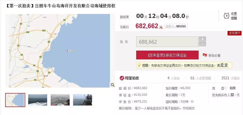 ▼男友繳納12萬元人民幣當保證金,參與競拍一片海域的使用權。拍賣開始後,有人出價68萬元人民幣(約台幣310萬元)。