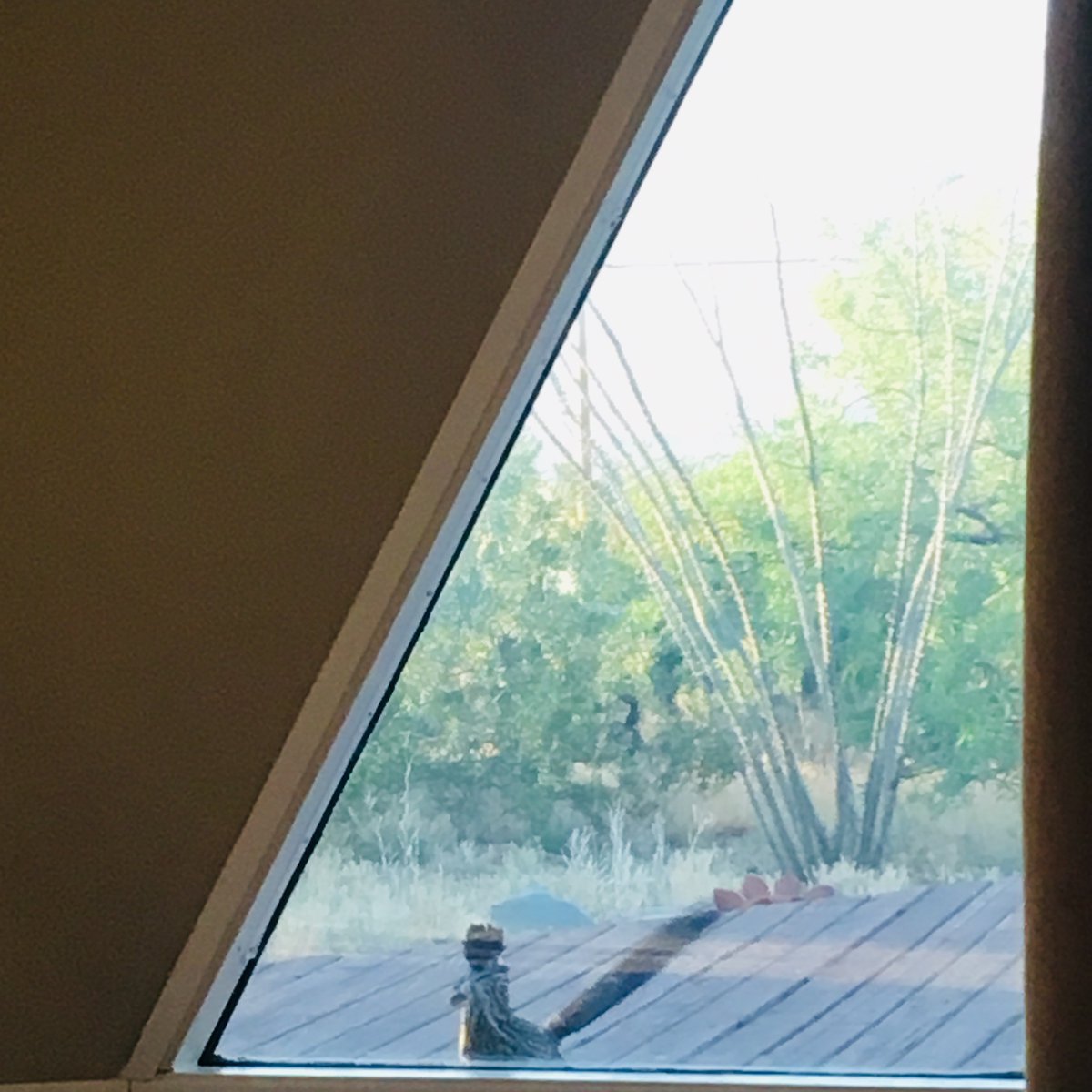 ▼原本搞不清楚走鵑目的的 Havi,在隔天又見到了這隻走鵑叼著戰利品出現在窗外。