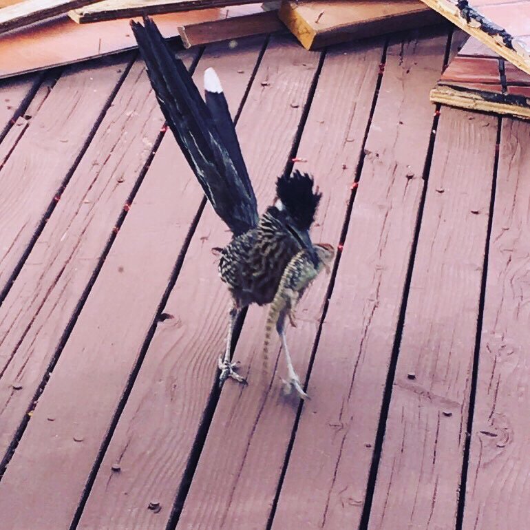 ▼一開始,Havi 在推特上表示「原本每次我要拍照就飛走的走鵑,今天突然叼著一隻蜥蜴來敲打我的窗口,向我炫耀牠的戰利品,這實在太酷了!」