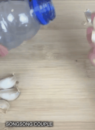 ▼將大蒜丟進寶特瓶中,搖一搖皮就剝好了。