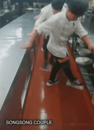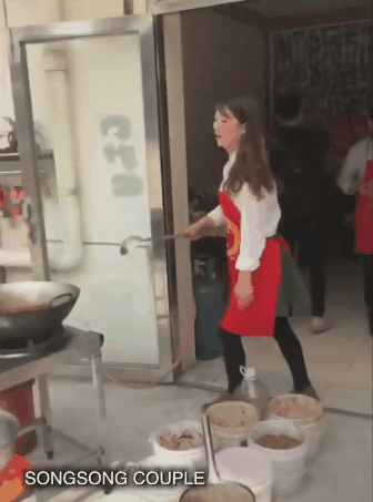 ▼炒鍋很重,還很燙手,但她有獨特的技巧。