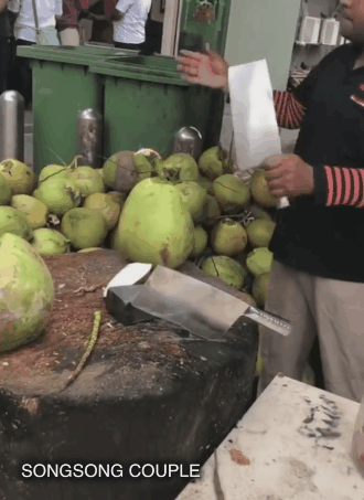 ▼椰子汁販賣機很好用?他比機器還厲害。