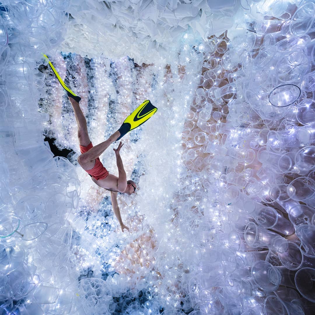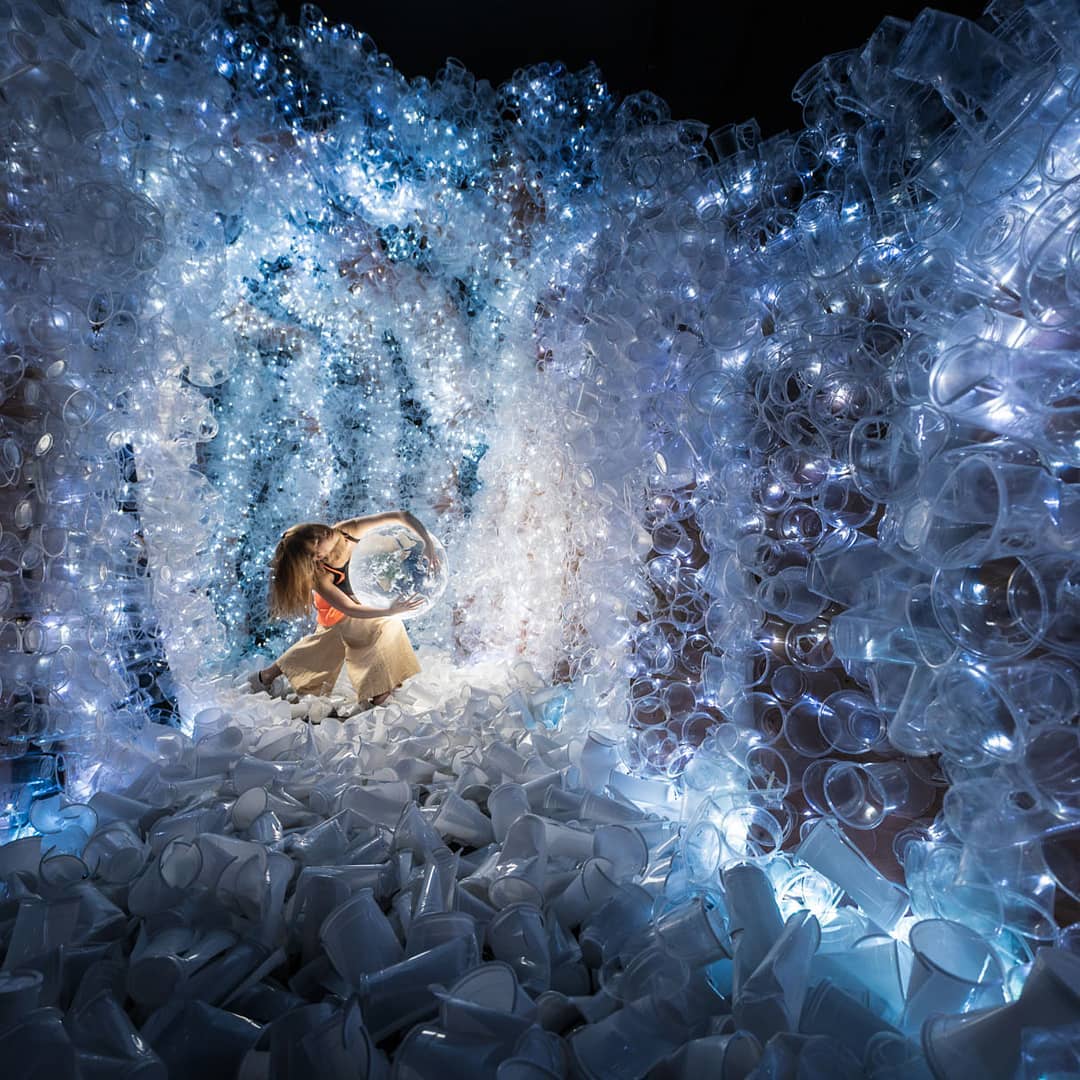 ▼志願者花費了一天半的時間收集了18000個塑膠杯,並用28小時將它們清理乾淨。他們將這些塑膠杯打造成了一個水晶洞穴,在這裡可以拍出閃亮的照片,並且喚醒全世界人的環保意識。