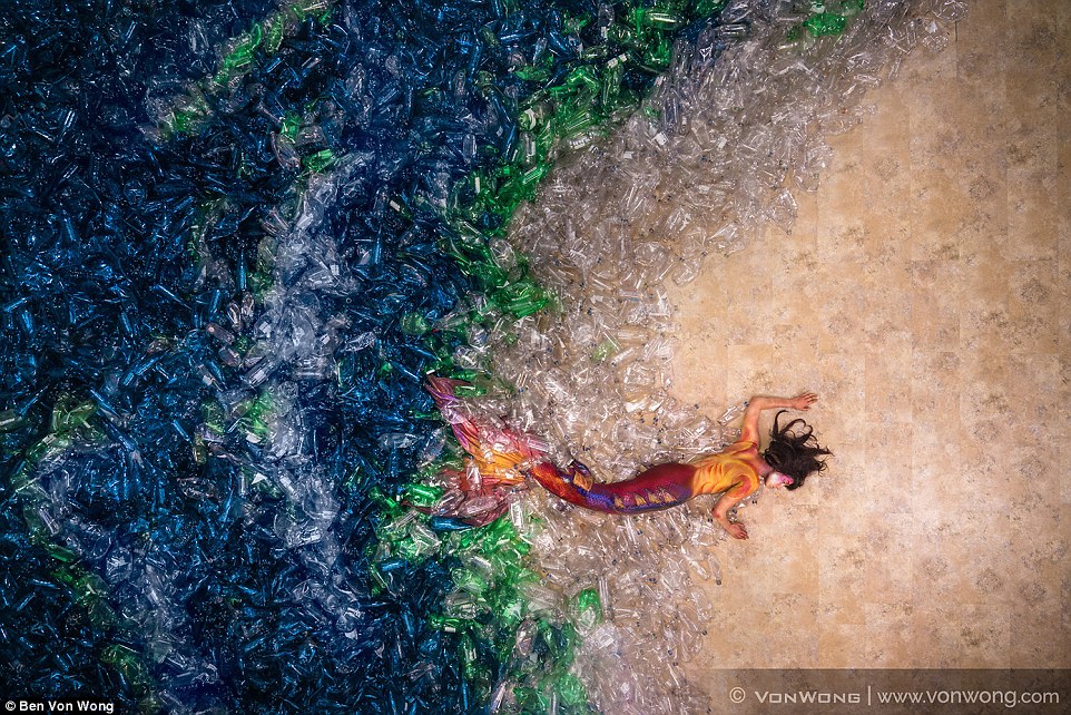 攝影師用10000個寶特瓶拍出夢幻美人魚 絕美作品背後的醜陋真相令人心痛