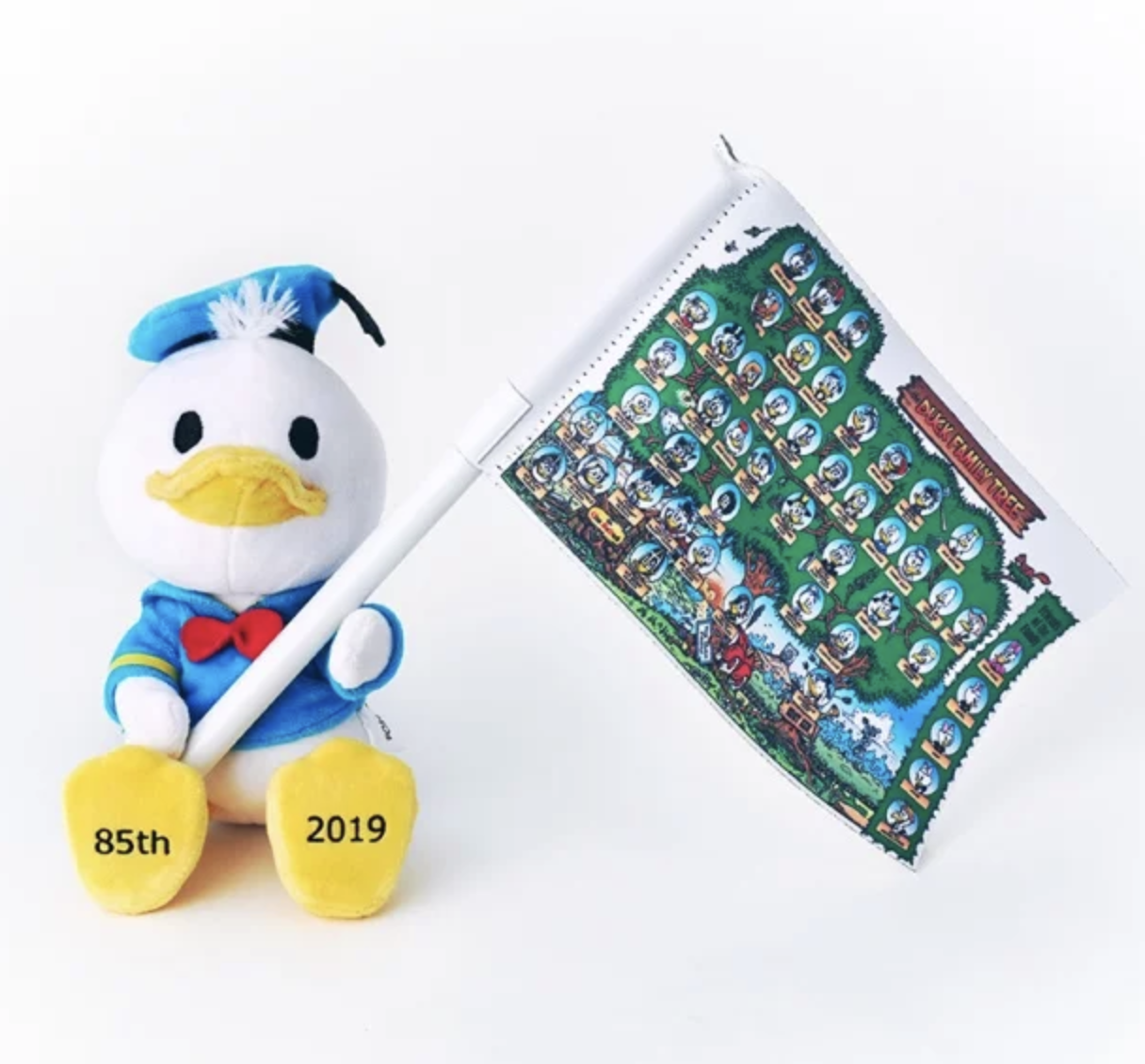 ▼歡慶我們唐老鴨大大85歲生日,NuiMOs 系列玩偶特別推出生日版的唐老鴨,在腳底印有2019與85th字樣的限定版,除此之外,還娃娃還拿著族譜旗幟,仔細看看上面是「唐老鴨家族樹」,買一隻就等於擁有整家族啊(誤)