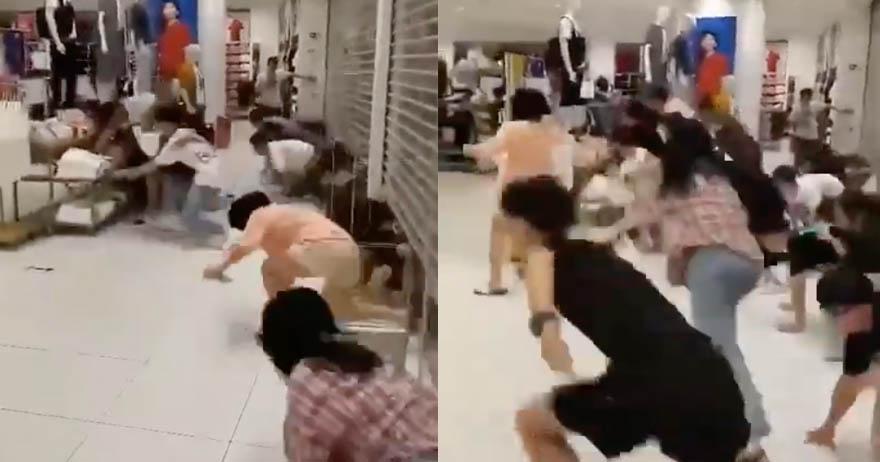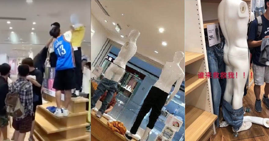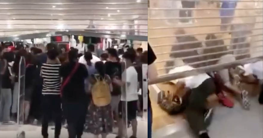 ▼UNIQLO店內人頭攢動,為了搶到衣服,有些人乾脆把模特身上的衣服扒下來。有些人因為搶衣服發生爭執,甚至從店內打到店外。