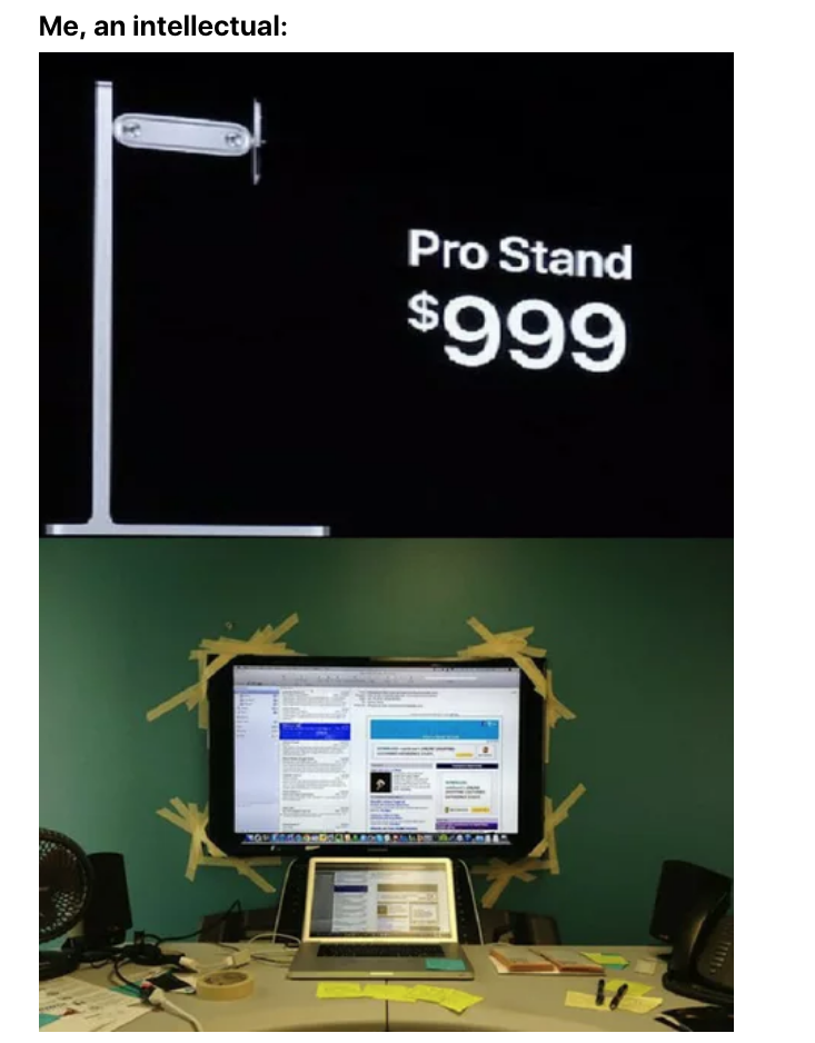 ▼自己組裝的電腦 VS 蘋果賣的螢幕支架。