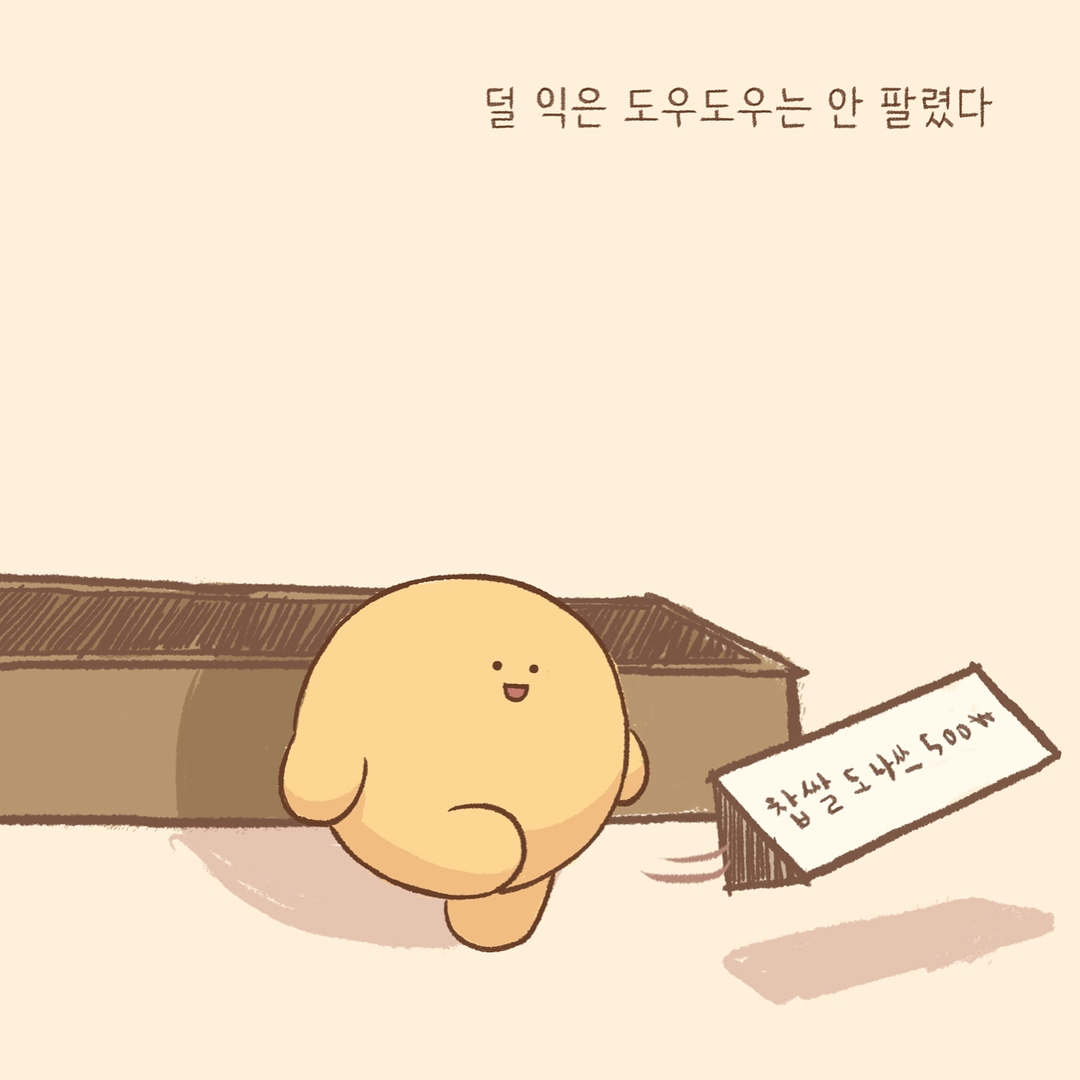 ▼Dow Dow本來是糯米甜甜圈,但是因為不熟的關係,賣不出去,Dow Dow覺得就算了「反正我自己也能很開心的活著啊~」