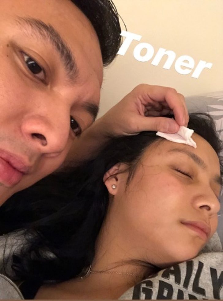 ▼2. 女友正在醫院努力接受治療,男友以行動支持,還幫她綁了很好看的編髮。