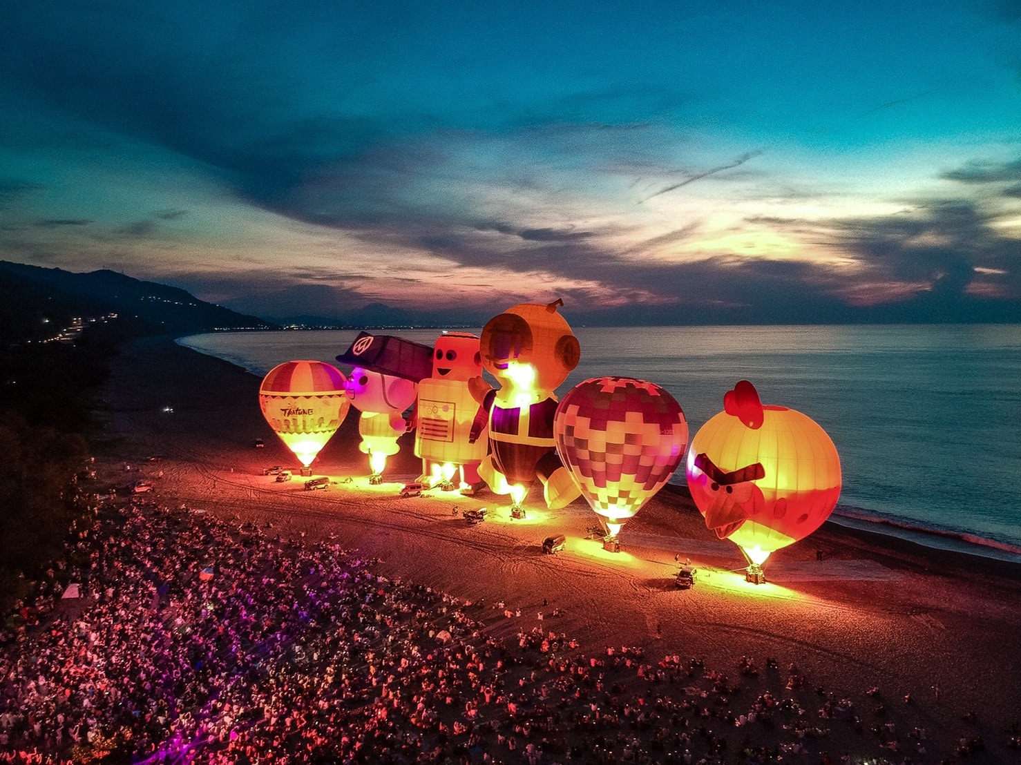 ▼晚間時分,南苑生態公園旁更會推出夜間光雕秀,看到夜間的熱氣球!搭配熱氣球的巨型噴火器,在暗夜中會有震撼的光影效果。不過要注意的是,熱氣球因為天氣條件影響較鉅,有可能因天候取消,所以必須密切注意官方消息哦~