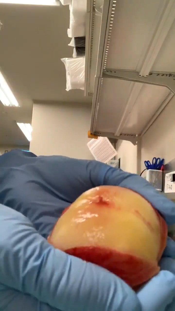 洗った桃を、包丁の背の部分で、全体に軽く撫でたら、皮だけ切る形で、切れ目を1本入れて、切れ目を左右に開くと、つるんと剥けるよ pic.twitter.com/rmzxkTaezT