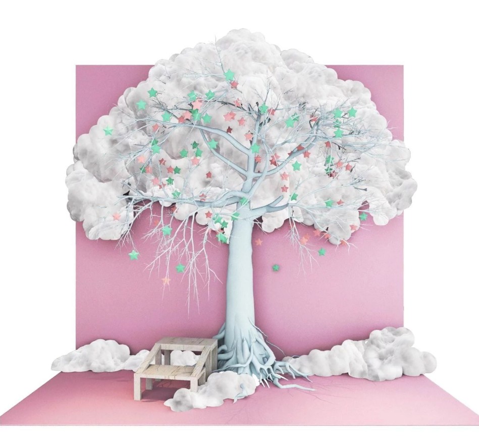 ▼一樓的迎賓拍照亭將會以新月作為主體,帶出 Kiki Lala 的生活居住地,呈現出宇宙中美麗的銀河景致,讓大家可以進入到他們的故鄉當中。這顆掛滿了星星的白色許願樹,也讓人好想要在這裡許下心願,讓 Kiki Lala 幫我們實現!