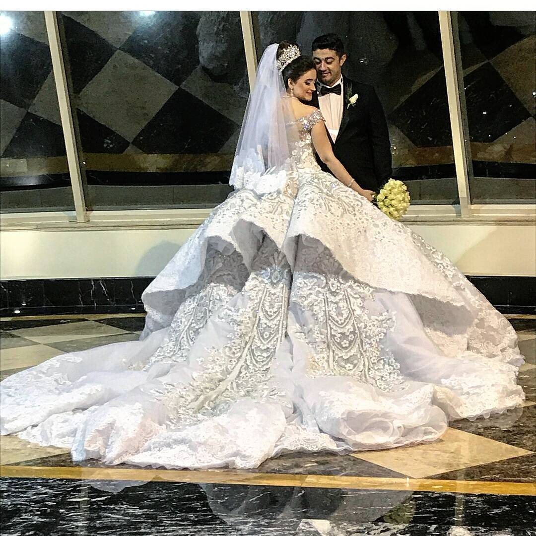 ▼來自哥倫比亞的美魔女蘇菲亞維加拉(Sofia Vergara),婚禮上穿著 Zuhair Marad 的婚紗,上面嵌了數千個耀眼的珍珠和亮片,後面的裙子還是可以拆卸的,讓她在舞蹈環節時更加方便移動。