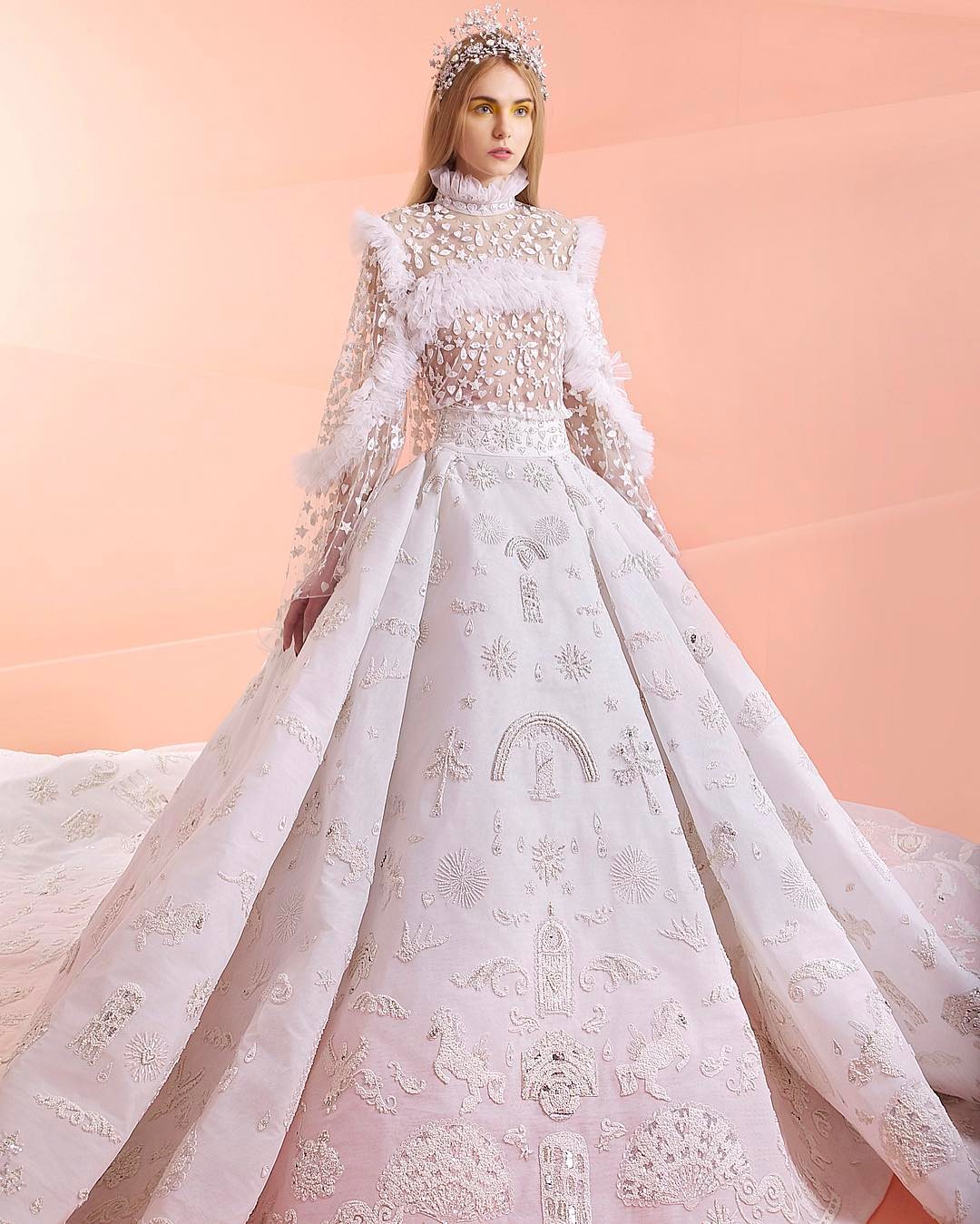 ▼黎巴嫩設計師 Rami Kadi 將歷史故事和童話都融入了這件婚紗當中,編織成這件獨一無二的結婚禮服。