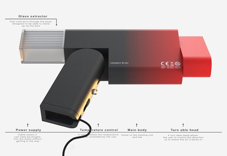 ▼設計師Chris Barnes設計了一款名為RED的吹風機。它的機身以紅色為主,漸變為黑色,帶給人強烈的視覺衝擊感。