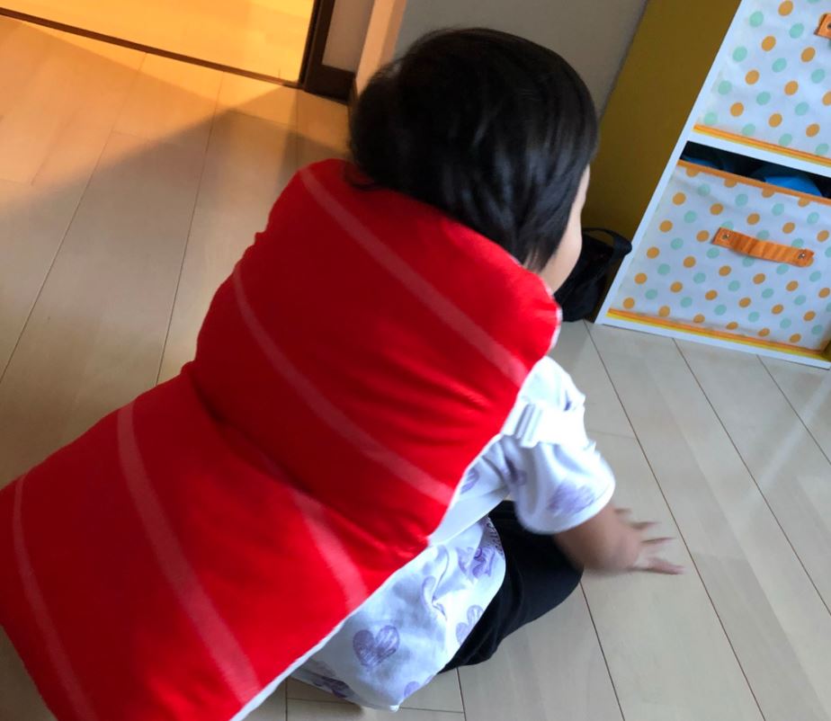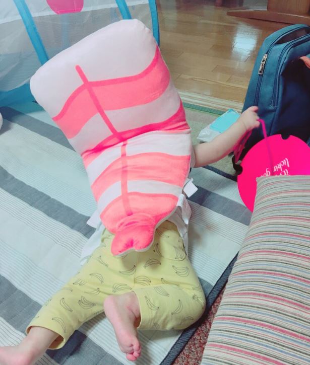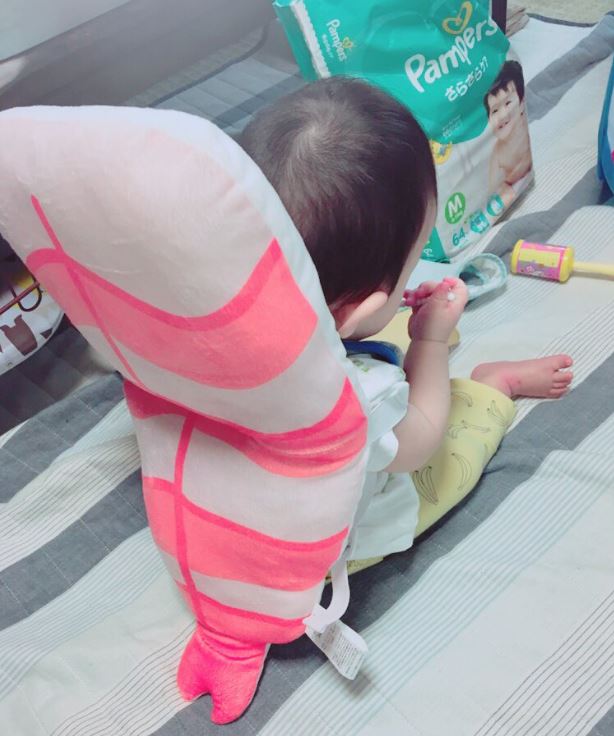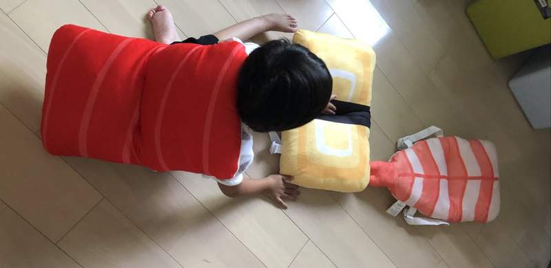 小朋友揹上護頭枕變身壽司,看起來非常療癒。各位爸爸媽媽是不是很心動,也想買一個給自家的寶貝玩呢?