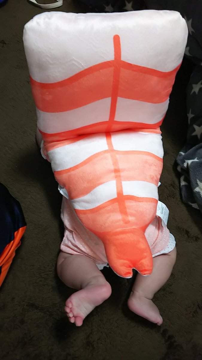 超萌護枕一揹變「寶寶壽司」 家長大愛:有行走的蝦蝦耶~