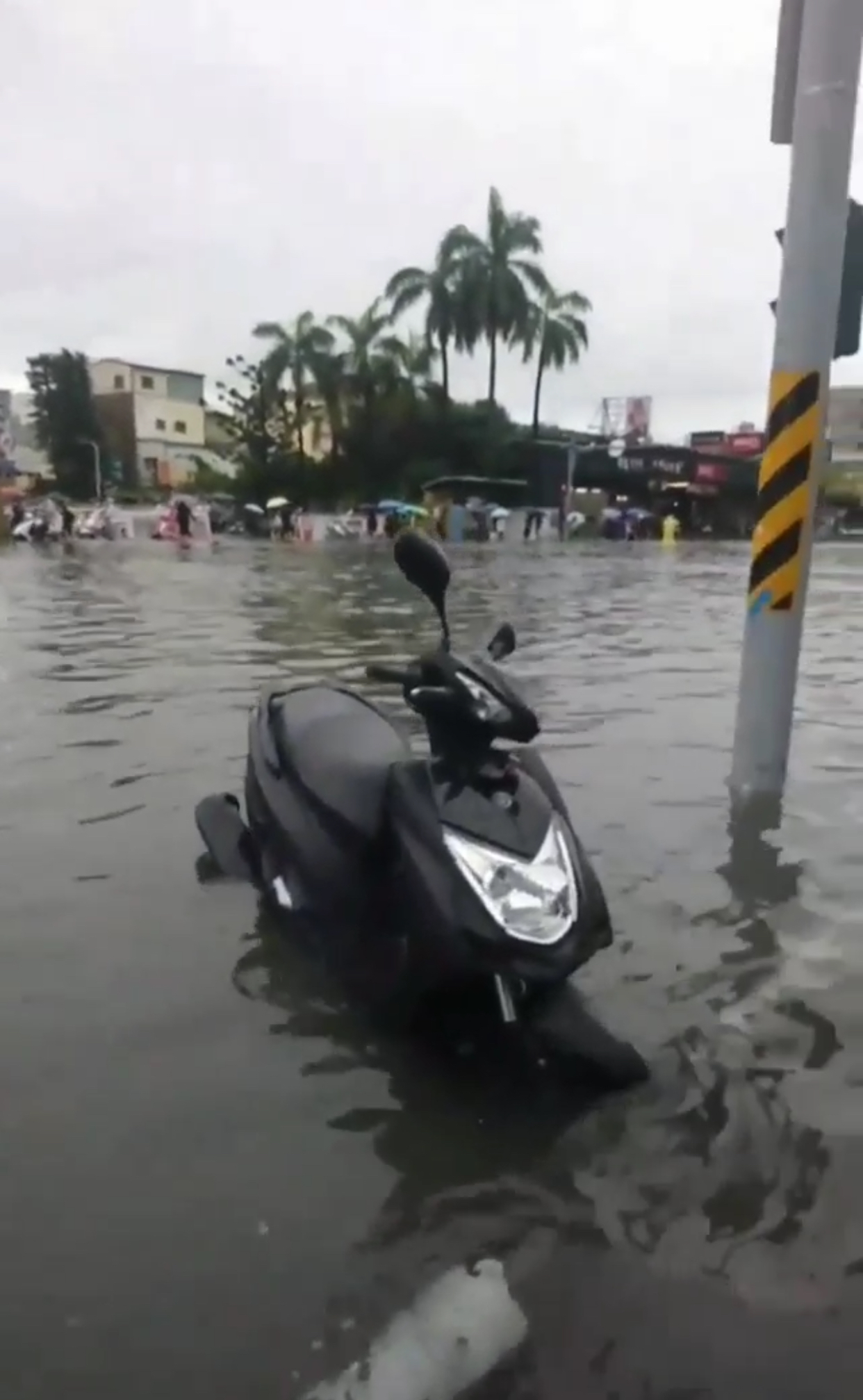 ▼淹水情況出現,機車不是不敢發動就是發不動,但依然有勇士勇往直前,無所畏懼。