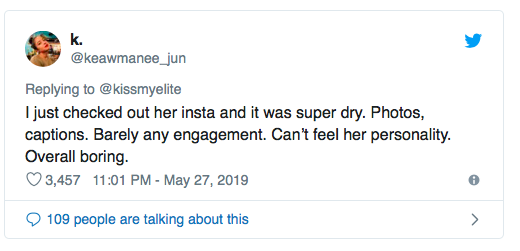 ▼「我剛剛刷了她的IG,沒有什麼內容,都是照片之類,幾乎沒有互動,感覺不到她的個性。總之就是很無聊。」