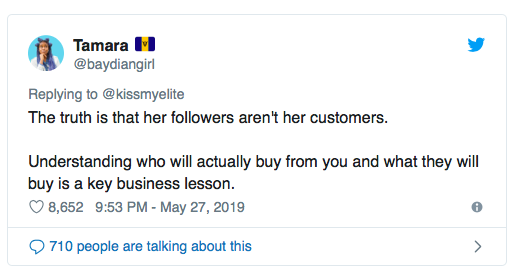 ▼「追蹤她的人並不是她的顧客。做生意的第一要務:搞清楚誰會買你的東西、他們會買些什麼。」