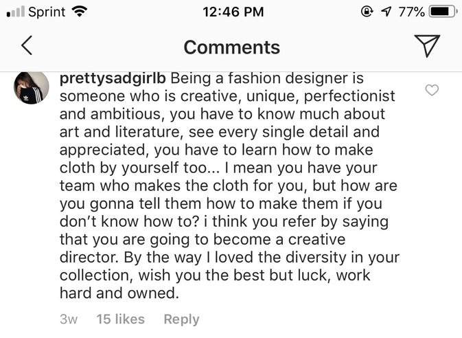 ▼「設計師要有創意、個性、完美主義,還要有野心。你要了解藝術和文學,掌控所有的細節,懂得欣賞,還得學會自己做衣服。雖然你有替你做衣服的團隊,但你不懂設計的話,你要怎麼告訴他們怎麼做?不過我喜歡你的多元性,祝你好運。」
