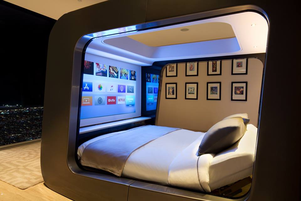 ▼14.Adora Ultimate Smart Bed懶人智慧床,內建按摩椅、立體聲音響、保險箱、耳機、工作台、書架、燈、藍牙、USB插口,SD卡插槽和電源插座。