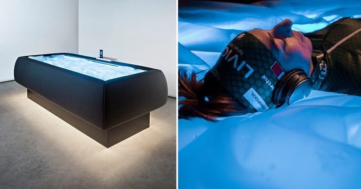 ▼2.這款The Tranquility Pod智能床呈蛋形船艙形狀,輕柔的震動,隨著心情變化而改變的燈光,還有使人放鬆的音樂,營造出非常舒適寧靜的氛圍,能夠有效緩解失眠。
