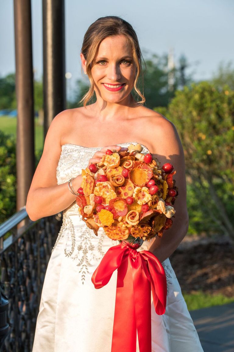 ▼新娘界在捧花上的創意不止於此,之前還有新娘使用過 Pizza做成的捧花,在婚禮結束後就可以享受美味了!
