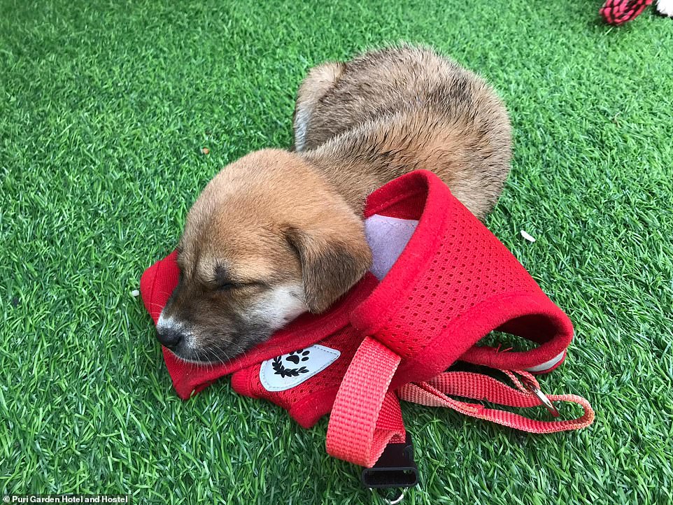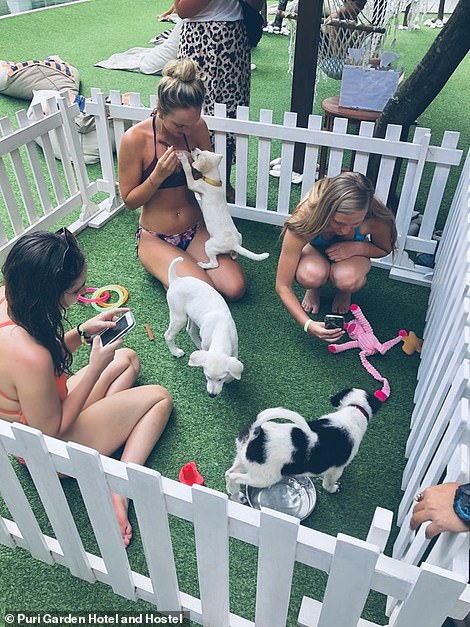 ▼飯店的旅客可以在泳池旁,與這些小狗狗們盡情玩耍、擁抱和拍照。