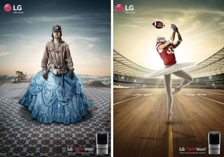 ▼LG 洗衣機的廣告,即使是不同材質的衣服,也能一起清洗!