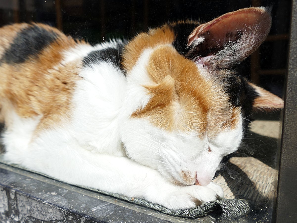 ▼這隻貓咪經常在窗前曬太陽睡覺,很多人路過時都曾隨手拍照。大家紛紛分享自己拍到的照片,拼湊牠以前生活的痕跡。