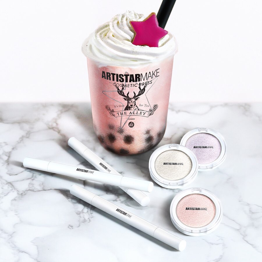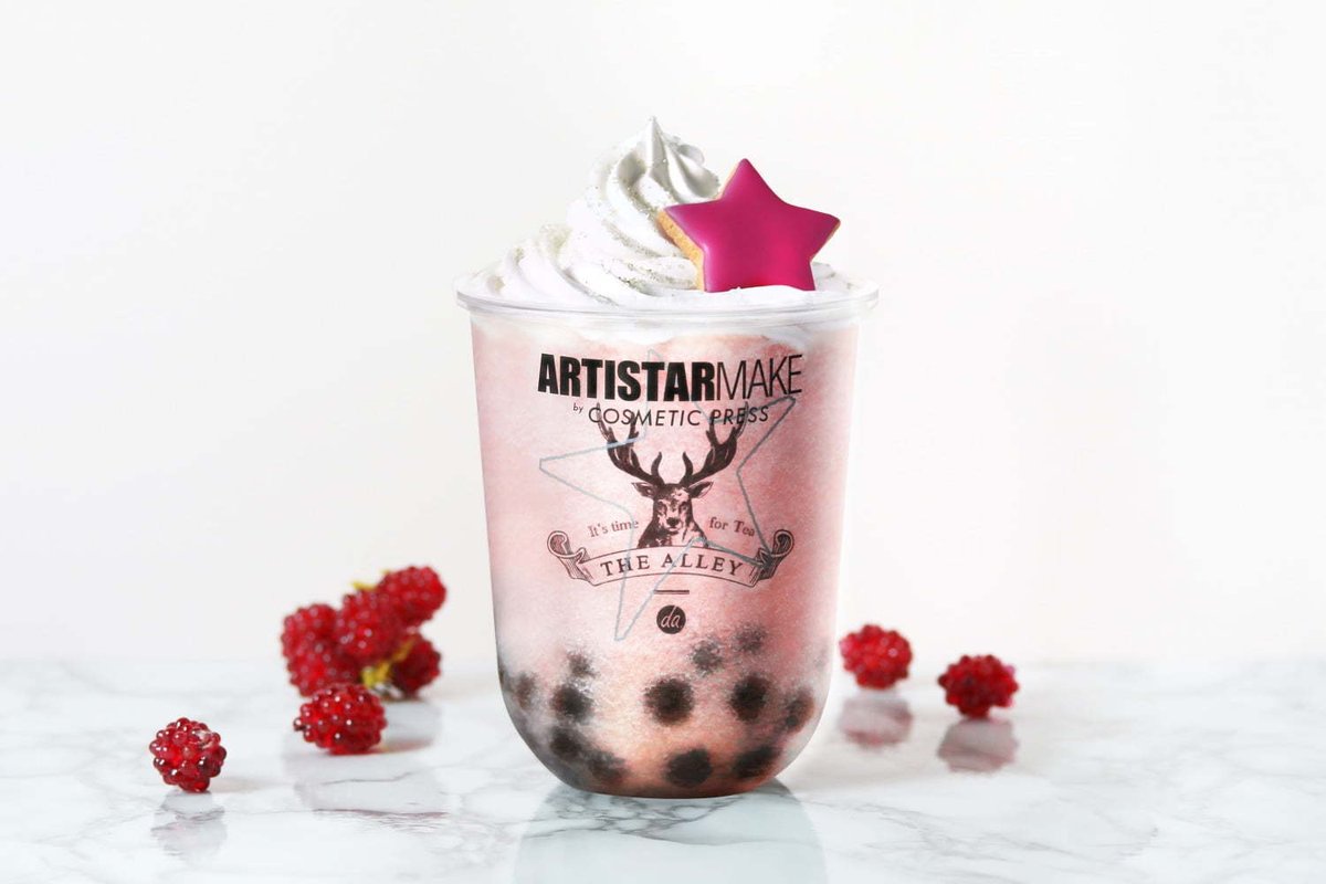 ▼為了這次獨家聯名,日本鹿角巷推出超夢幻的「草莓珍奶」,除了在珍奶中加入草莓之外,上面還放了粉紅星星糖霜餅乾,撒上閃閃發光的糖粉,杯子設計印上「ARTTISTARMAKE」字樣,整杯珍奶有著滿滿的少女感~~