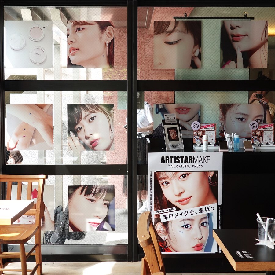 ▼現在鹿角巷在東京中目黑分店打造出限定店,玻璃窗上也展示出這次獨家聯名的彩妝品,這次還特別請來知名模特兒「古畑星夏」拍攝宣傳照片,如果有來東京旅遊的話,不仿來這裡坐坐~~