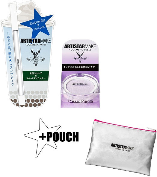 ▼ARTTISTARMAKE設計出期間限定化妝包,銀色閃亮的化妝袋一面印上星星圖樣,另一面印上Logo,整體很有質感!另外也有限定套裝,讓你一次把想要彩妝品、化妝包通通帶回家!