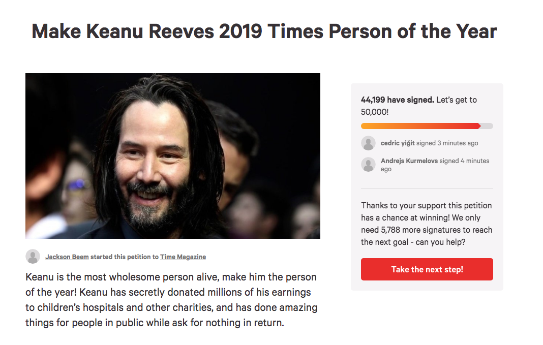 2019根本是「基努李維年」! 粉絲發起連署:讓他當《時代》年度風雲人物