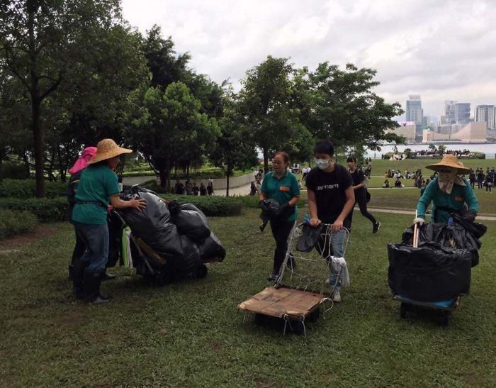 ▼6. 事件結束後,留在原地的群眾幫忙清掃街道,還替垃圾分類。