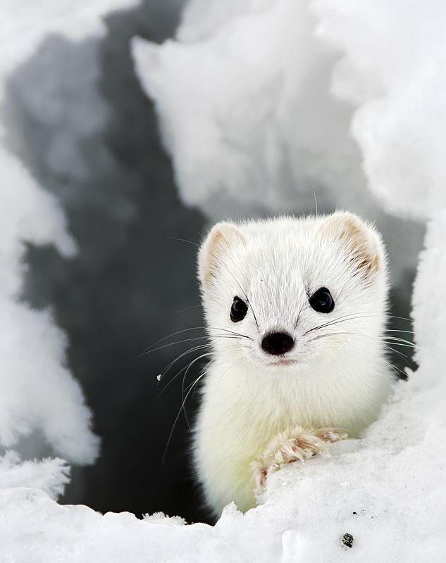 ▼雪貂毛茸茸的,外表可愛,天生活潑,非常吸引人。牠們動作靈活,冬天皮毛雪白,輕輕鬆鬆就能藏在雪地中,如果不是圓溜溜的黑眼睛和粉紅色的小鼻子,真的不容易發現牠們呢。
