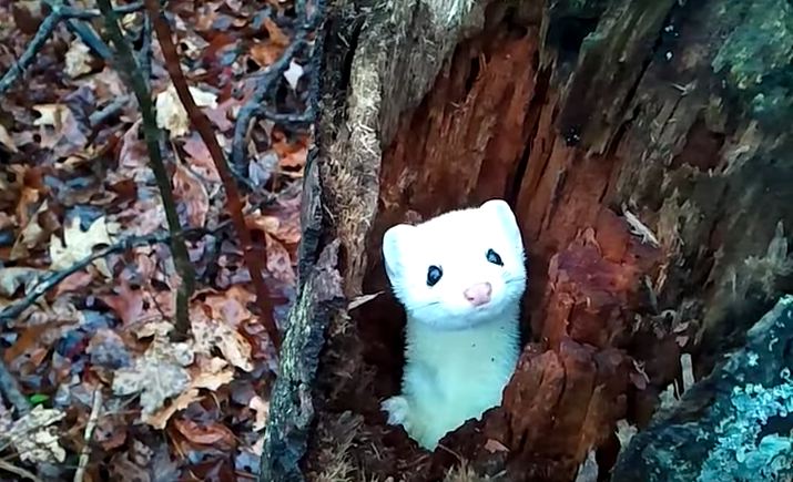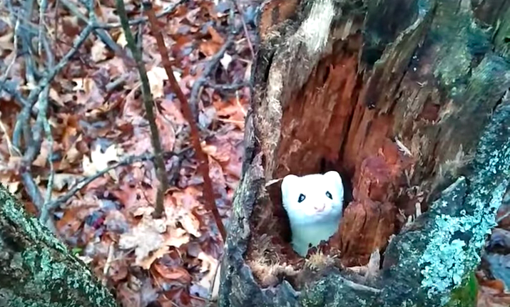 2019年02月28日大自然中充滿驚喜。國外網友Chris Cooper經常到森林裡,偶爾會遇到一些稀奇古怪的動物。那天他在密歇根州的一片森林時,看到一個白色的小精靈躲在樹身中。他走近去看,才知道那是超萌的雪貂。