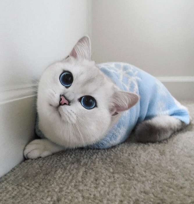 ▼非常疼愛Coby的主人還經常替牠穿上各種可愛的毛衣、帽子來拍照,還特意替Coby開了IG帳號,Po出牠的各種美照和醜照(有醜照嗎?誤),短短時間內就吸引了一大票網友關注,如今Coby已經是擁有超過7萬粉絲的喵界巨星了。