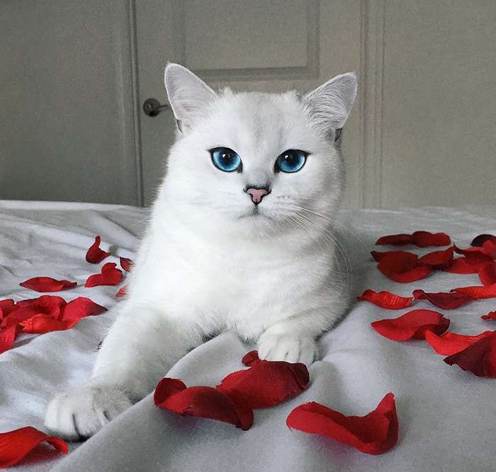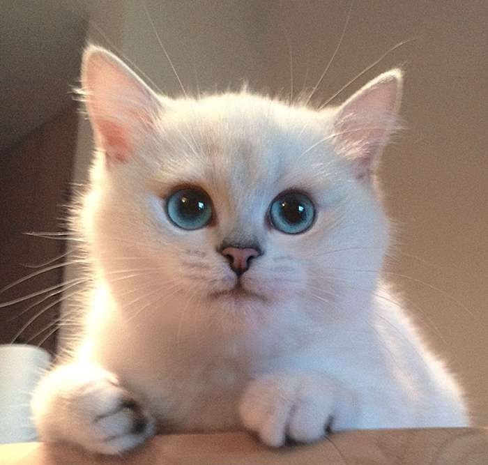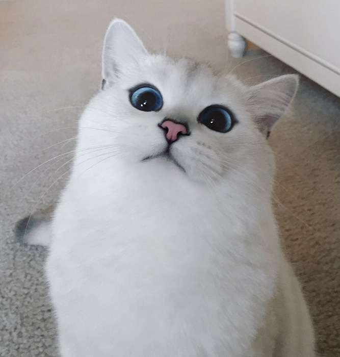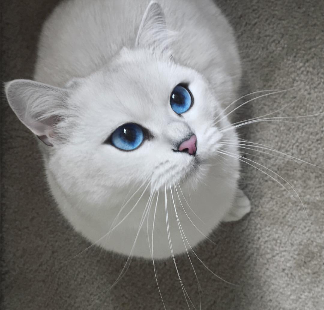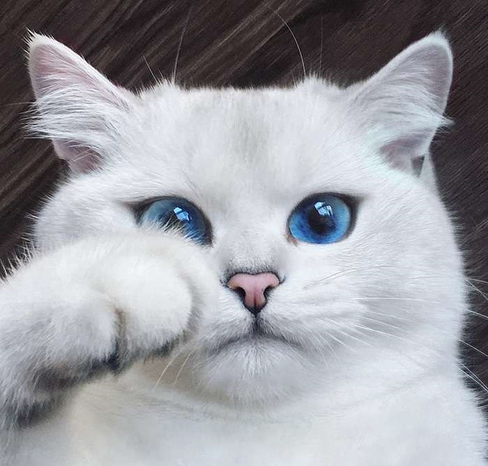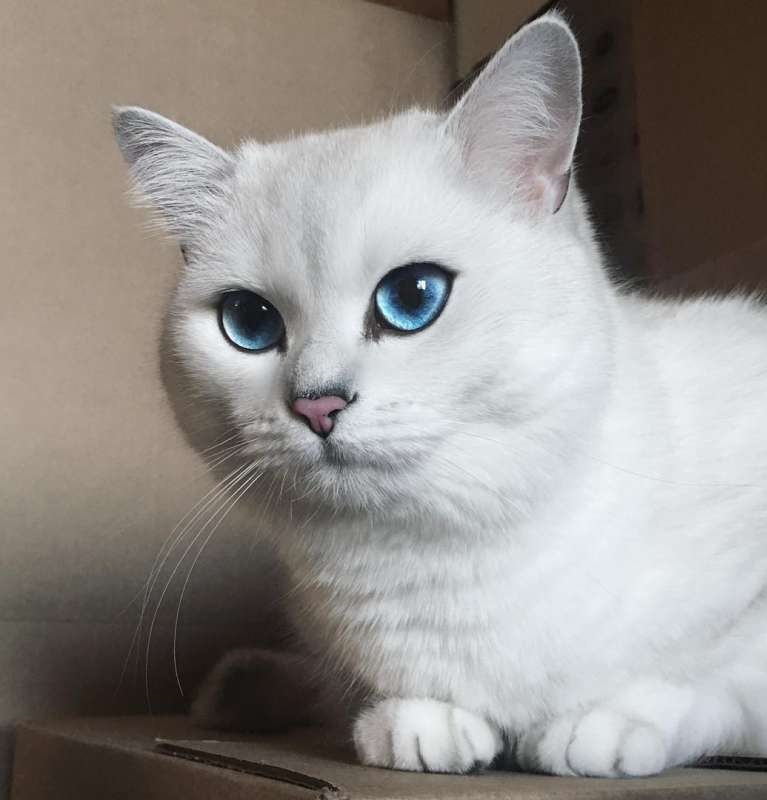 ▼Coby是一隻來自英國的短毛貓,牠除了擁有一身雪白、蓬鬆又柔軟的皮毛以外,還有一雙清澈水亮的藍色大眼,眼睛周圍還像是畫上了黑色的眼線般,更是突出藍眼極致的美感與輪廓。