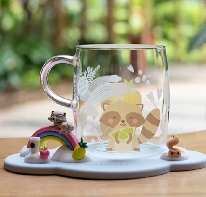 ▼14oz 彩虹動物款冷變玻璃杯 + 水果樂園杯墊。