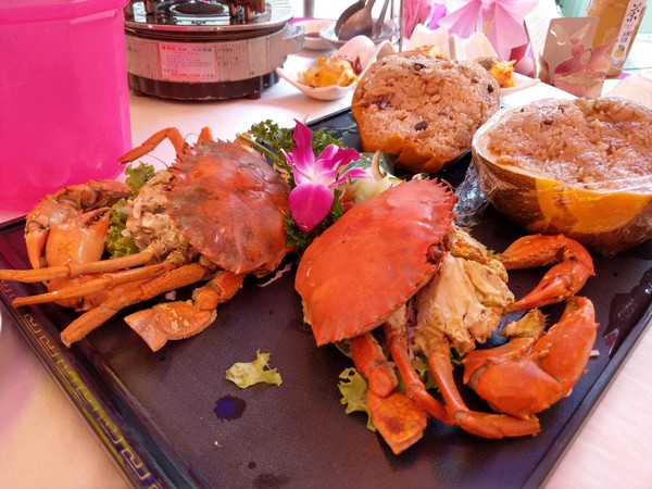▼籌備結婚典禮的新人,有些人喜歡找酒店、婚宴會館或是高級餐廳舉辦,而有些人特別喜歡找傳統流水席,不但俗勾大碗,又充滿人情味!看看這個螃蟹沒再跟你小小隻切對半,而是兩大隻螃蟹擺上桌,旁邊還有超大碗米糕,這也太豐盛了吧!