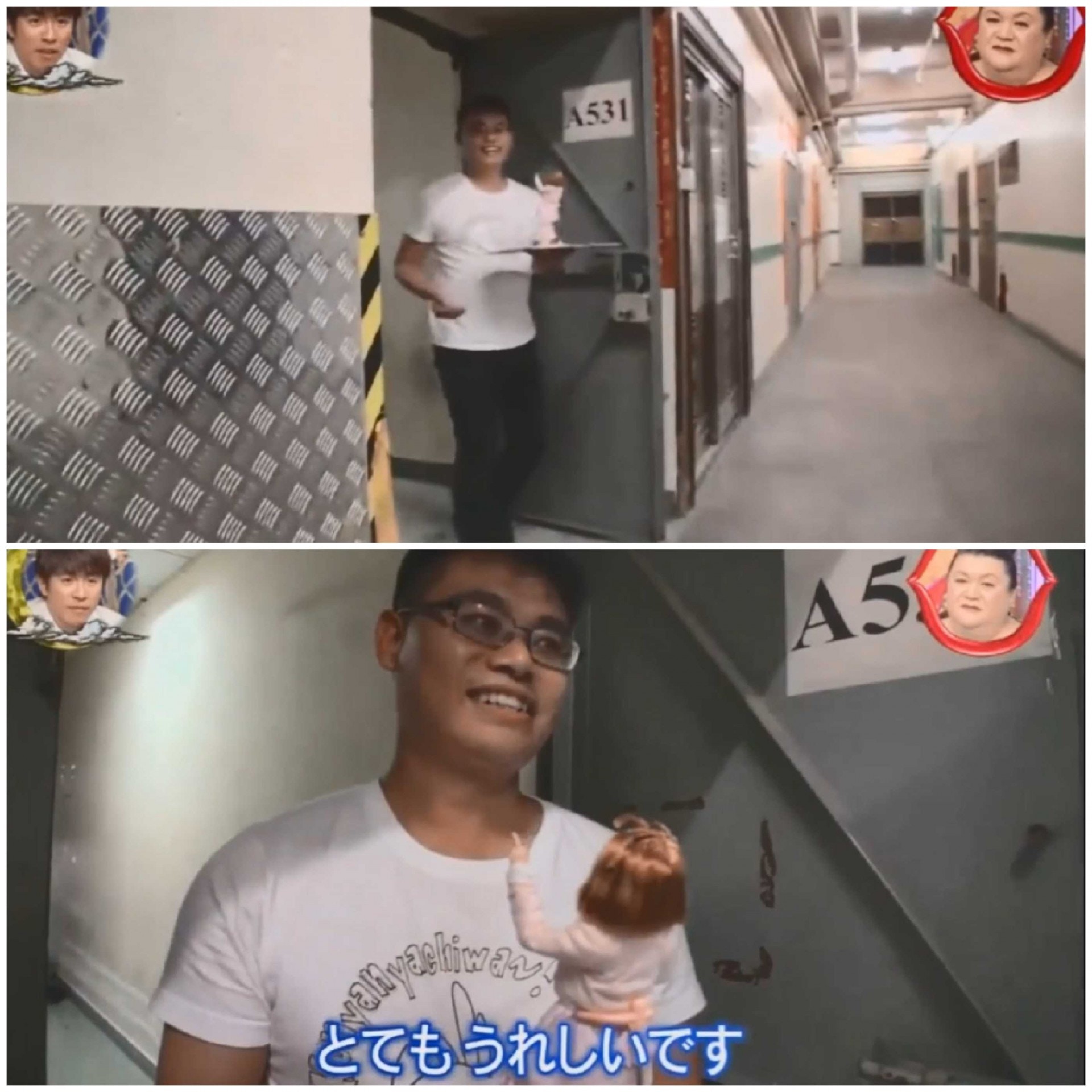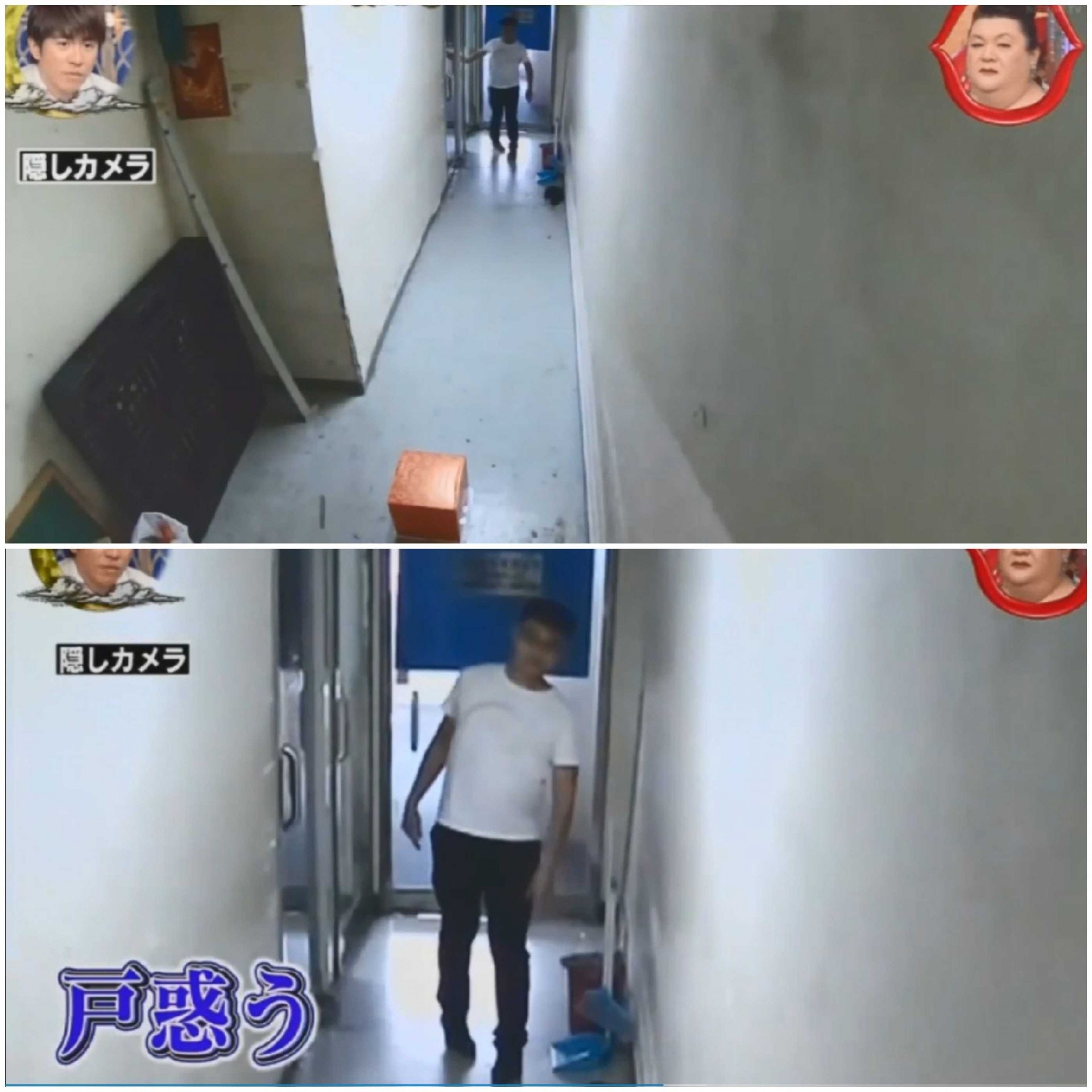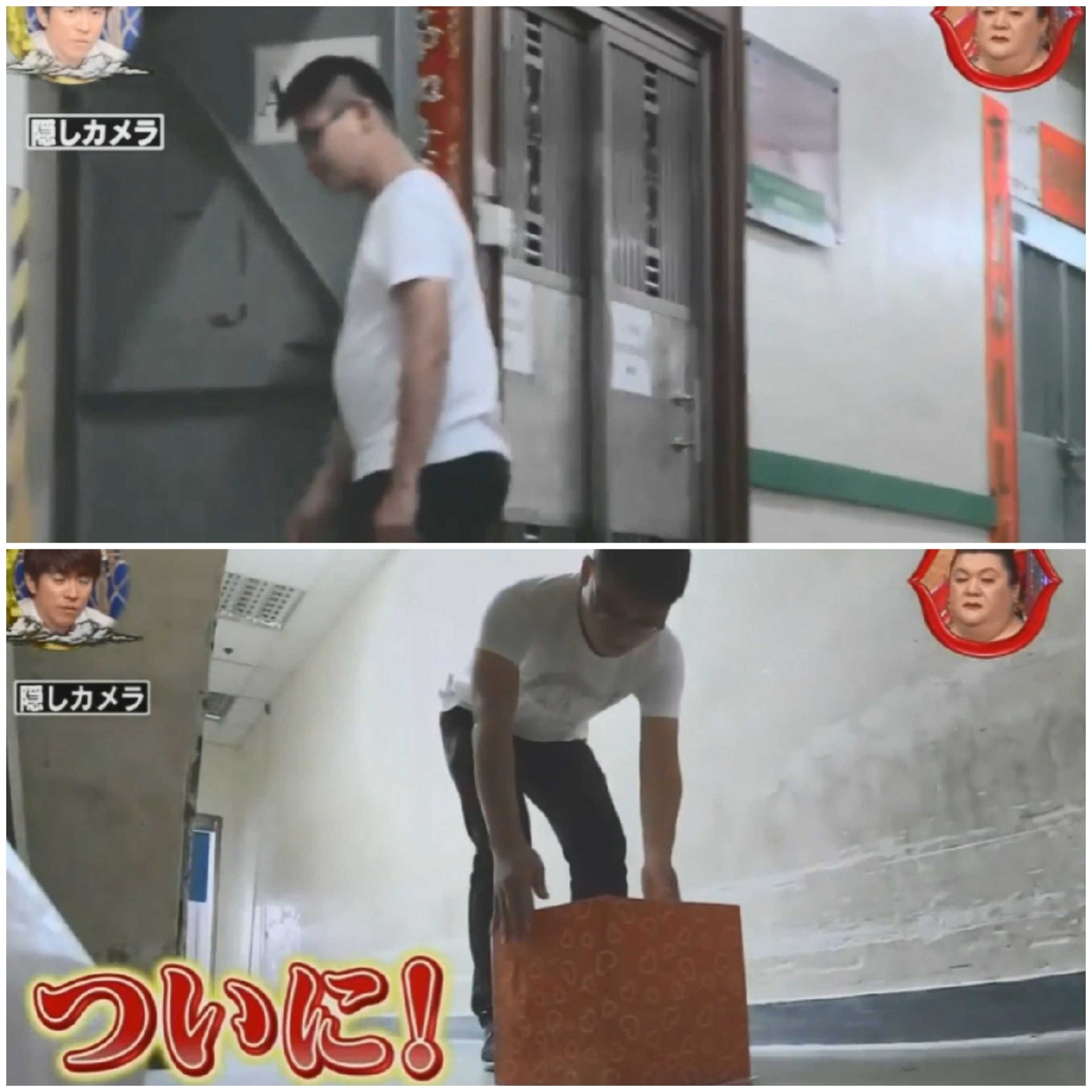 ▼他們將盒子放在走廊中央,敲門後馬上躲起來,等著男生出來。