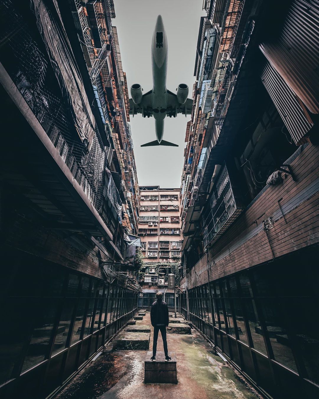 ▼在這個賞飛機秘境都沒有放過,小小的巷弄,兩旁密集的住宅大樓,完美捕捉一整架飛機有一種身在香港的錯覺呢!