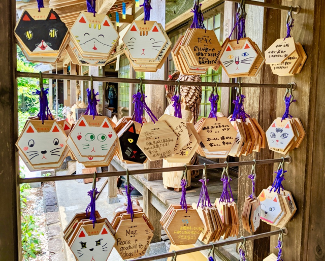 ▼廟中還準備了許多可愛的貓咪面具,讓大家可以用來拍照喔!