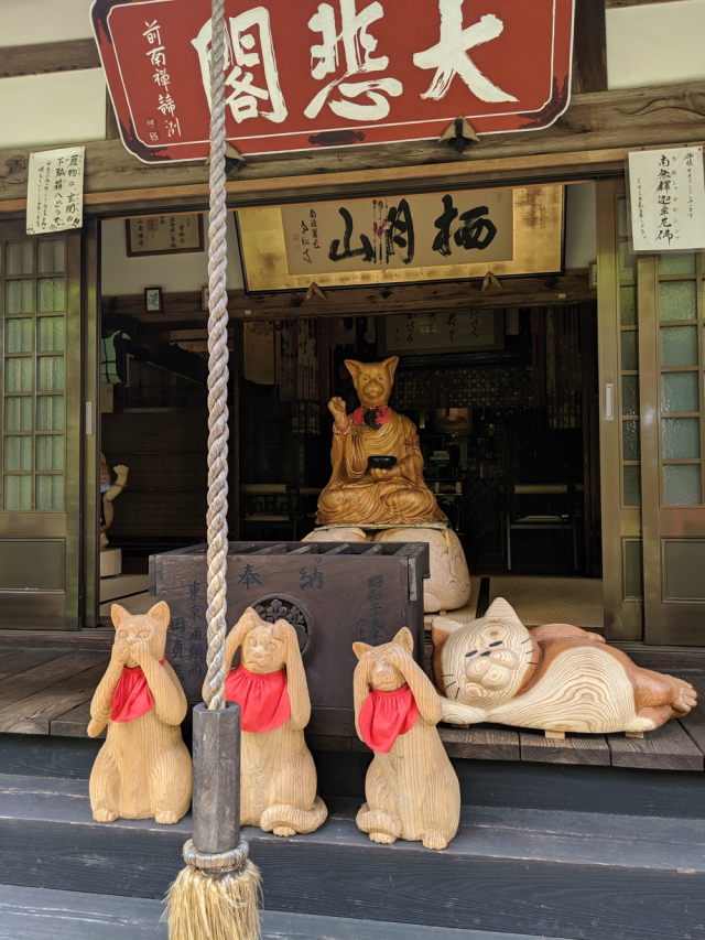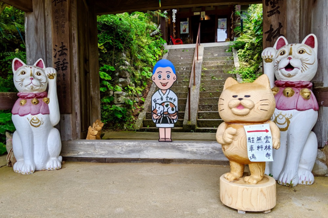 ▼來到寺廟的門口,遠遠就可以看到可愛的貓咪石像在熱情歡迎來訪的遊客!